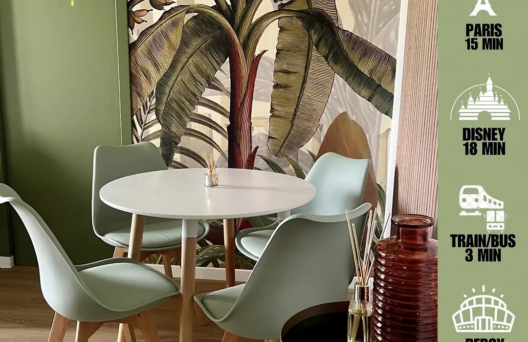 Az apartman olyan önellátó felszerelésekkel rendelkezik, mint a mikrohullámú sütő, elektromos vízforraló és hűtő, így a vendégek saját maguk készíthetik el ételeiket. Az Addictea Cafe továbbá néhány pillanatra található az apartmantól. A Noisy-Champs vasútállomás mindössze 350 méter távolságra fekszik.